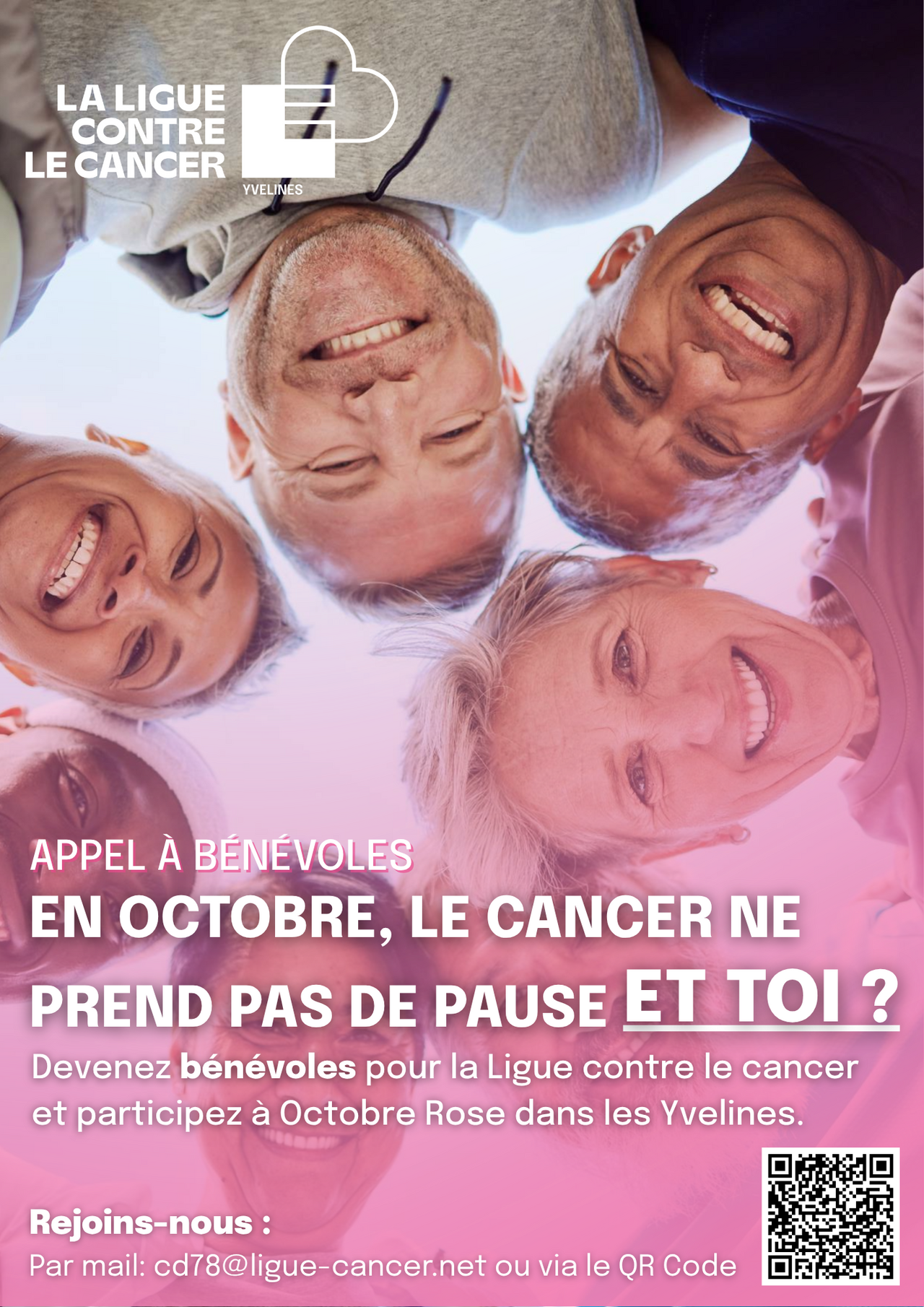 Rejoignez nous : https://benevolat.ligue-cancer.net/association/ligue-contre-le-cancer-comite-des-yvelines/campagne-octobre-rose-6x1vvca3jrr8?s=91ufw69p29mo99pc68u9jsckx