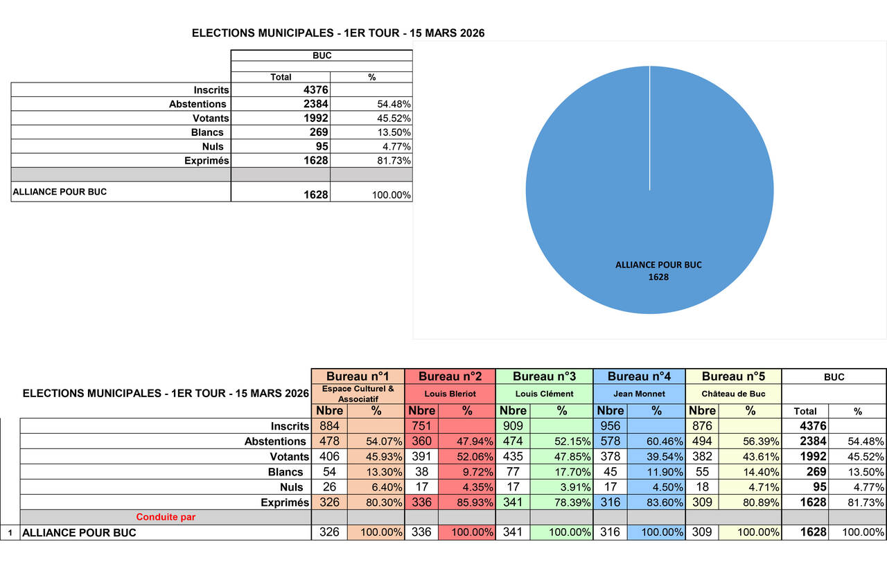 Retrouvez les résultats des élections municipales sur Buc, qui se sont terminées le dimanche 15 mars 2026