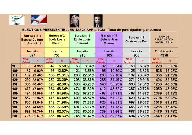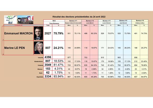 Retrouvez les résultats du 2nd tour à Buc : Télécharger le tableau