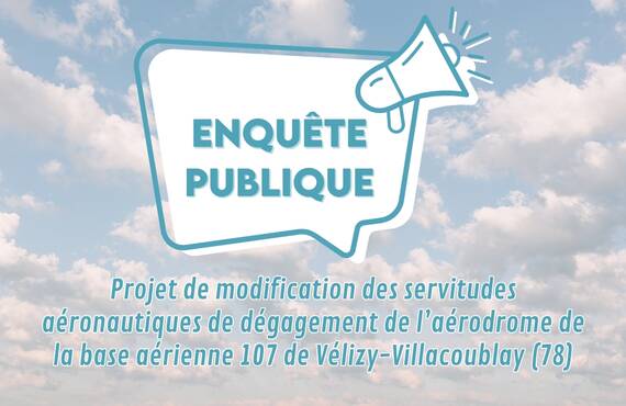 Par arrêté interpréfectoral n° 24-117 du 26 décembre 2024 une enquête publique a été ouverte préalablement à la modification du plan des servitudes aéronautiques de dégagement de l’aérodrome de la base aérienne 107 de Vélizy-Villacoublay (78).