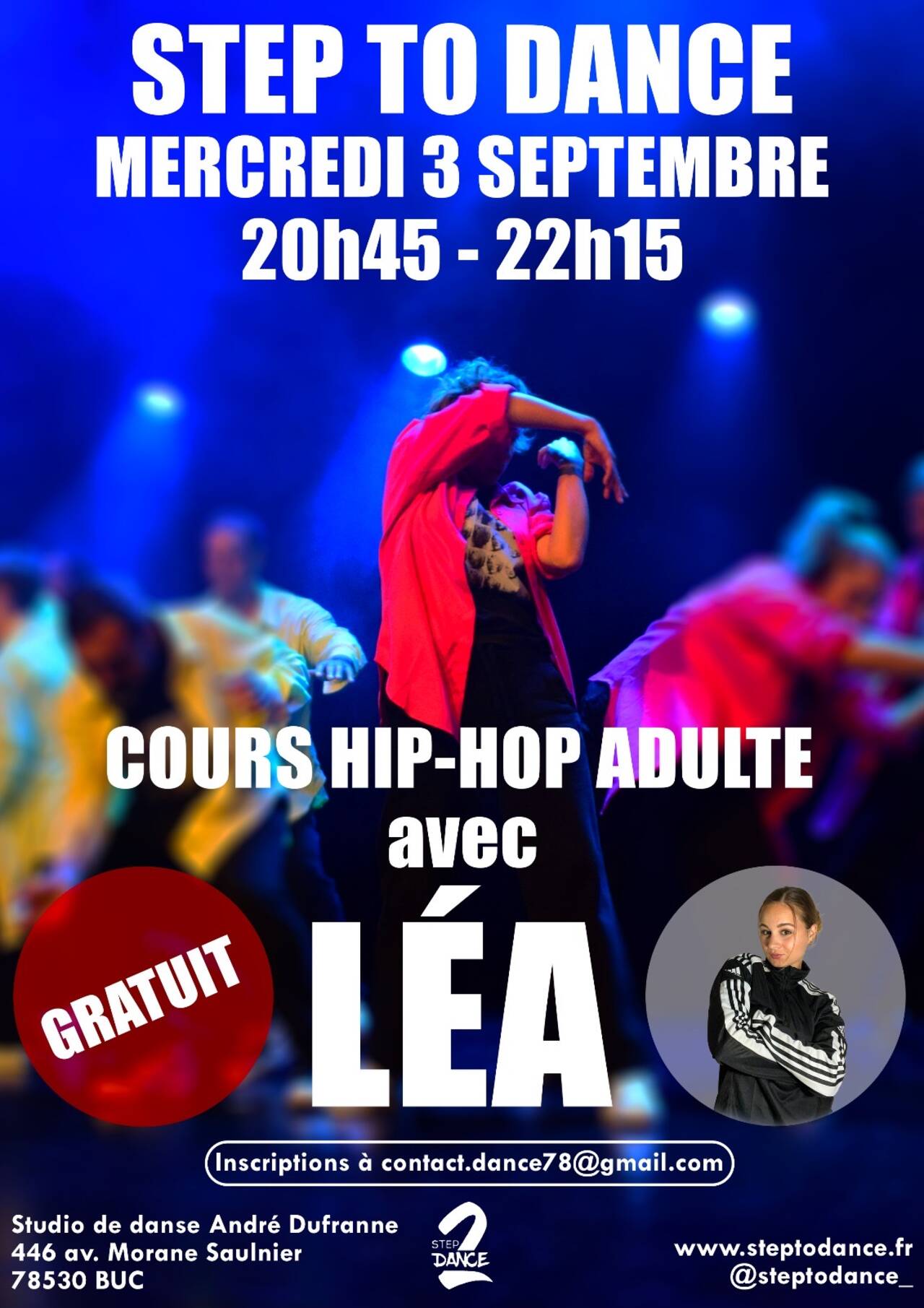 Léa vous invite à découvrir son univers Hip-Hop Adultes Loisirs lors d’un cours d’essai offert le mercredi 3 septembre 2025 à Buc (16 ans et +) 🕺💃